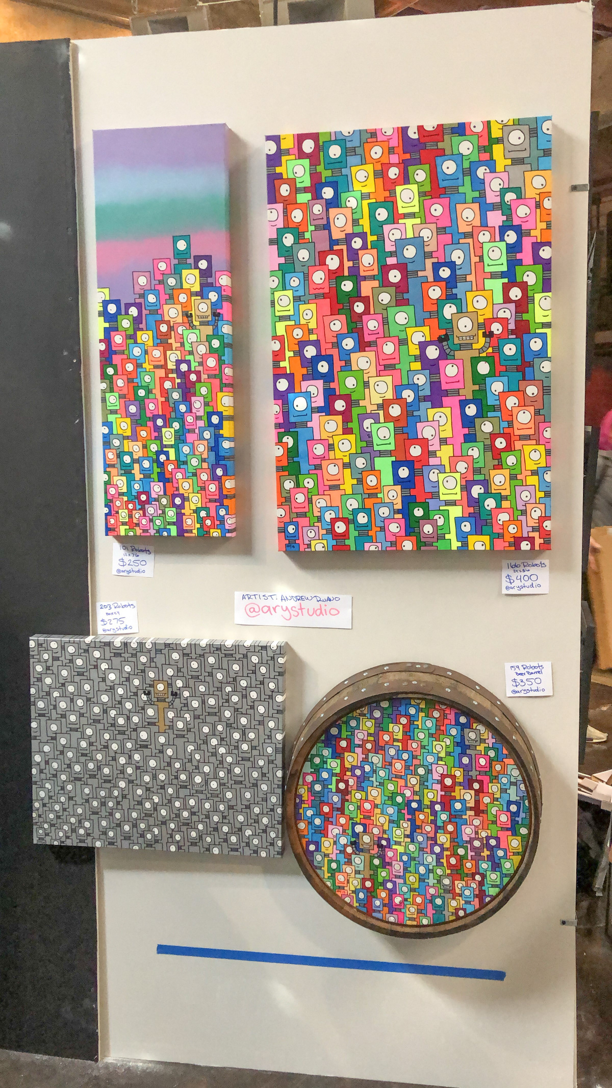 I enjoy using Gallery Wrap, 1.5in deep, Heavy Duty Canvas that range from 4x4in to 48x62in, as well as Wood Panels and Barrel Tops.
